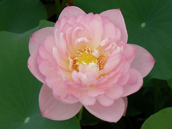 露华浓 武汉市东湖风景区于1982年育成,为‘东湖春晓’的自然杂种后代。体型:中,小株型,植于3号花盆中。花期较早,6月15日始花,群体花期较长,为21天。着花密度:较繁密,单盆开花4朵。花蕾:桃形,紫红色。花型:重瓣型。花态:碗状。花色:极淡至淡堇紫色。雄蕊:少,有时无雄蕊,多数瓣化。附属物呈乳白色。雌蕊:有时无花托,有托者心皮大部分泡状或瓣化,极少数能结实。