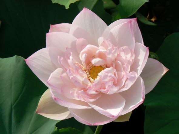 该品种为半重瓣类,红莲型,为“东湖春晓”的自然杂种后代。花蕾桃型,紫红色,花色呈淡紫色。群体花期长,为32天。株矮,花叶俱小。花瓣数较母本略有增加。