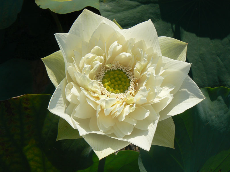 多年生水生挺水植物;中株型,花高于叶,开花繁,花重瓣型,白色,花态凤舞状。花期6-8月。