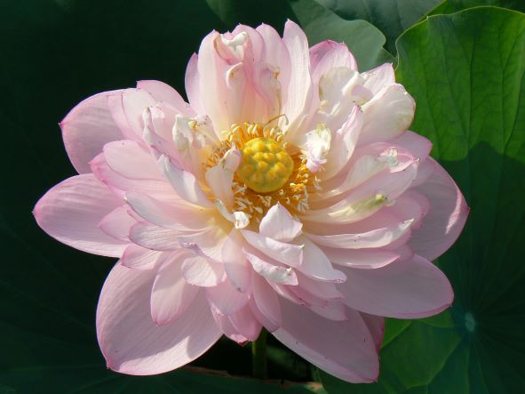 云腾霞蔚 武汉市东湖花卉盆景研究所于1989年育成。为‘秋水长天'自然杂交后代。体型:中、小株型。植于1号缸中。花期:较早,6月15日始花,群体花期较长,为28天。着花密度:繁密,单缸开花10朵。花蕾:圆桃形,淡红色。花型:重瓣型。花态:碗状。花色:极淡至淡堇紫色。雄蕊:部分瓣化。附属物中等大。雌蕊:发育正常。花型优美,但不规整,花色明丽淡雅。