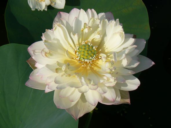 云锦 多年生水生草本;根状茎横生,肥厚,节间膨大,内有多数纵行通气孔道,下生须状不定根。叶圆形,盾状,全缘稍呈波状,上面光滑,具白粉,叶柄粗壮,圆柱形,中空。花重瓣,花瓣数172。花态碗状而后飞舞形,花瓣窄长,花型开展,外轮花瓣下垂,内部花瓣尖端上弯,远看有剪绒效果。花蕾长桃形,尖端红色,基部绿色。花尖端粉红色,基部逐渐变为浅黄色,内轮具绿色变瓣。
