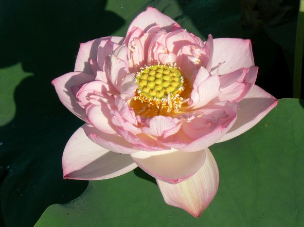 属于千瓣莲的一种,大型荷花粉中带白花尖点红,花瓣宽而尖,花期四到五个月,耐寒型。