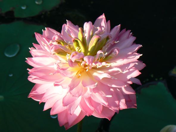 该品种为重瓣类,红莲型。群体花期长,为56天。花蕾桃形,紫色,花径13-19cm,花色呈堇紫色,基部淡黄色,花托绿黄色。盛开时花瓣下垂如瀑,胜似牡丹,故称“卓越”。